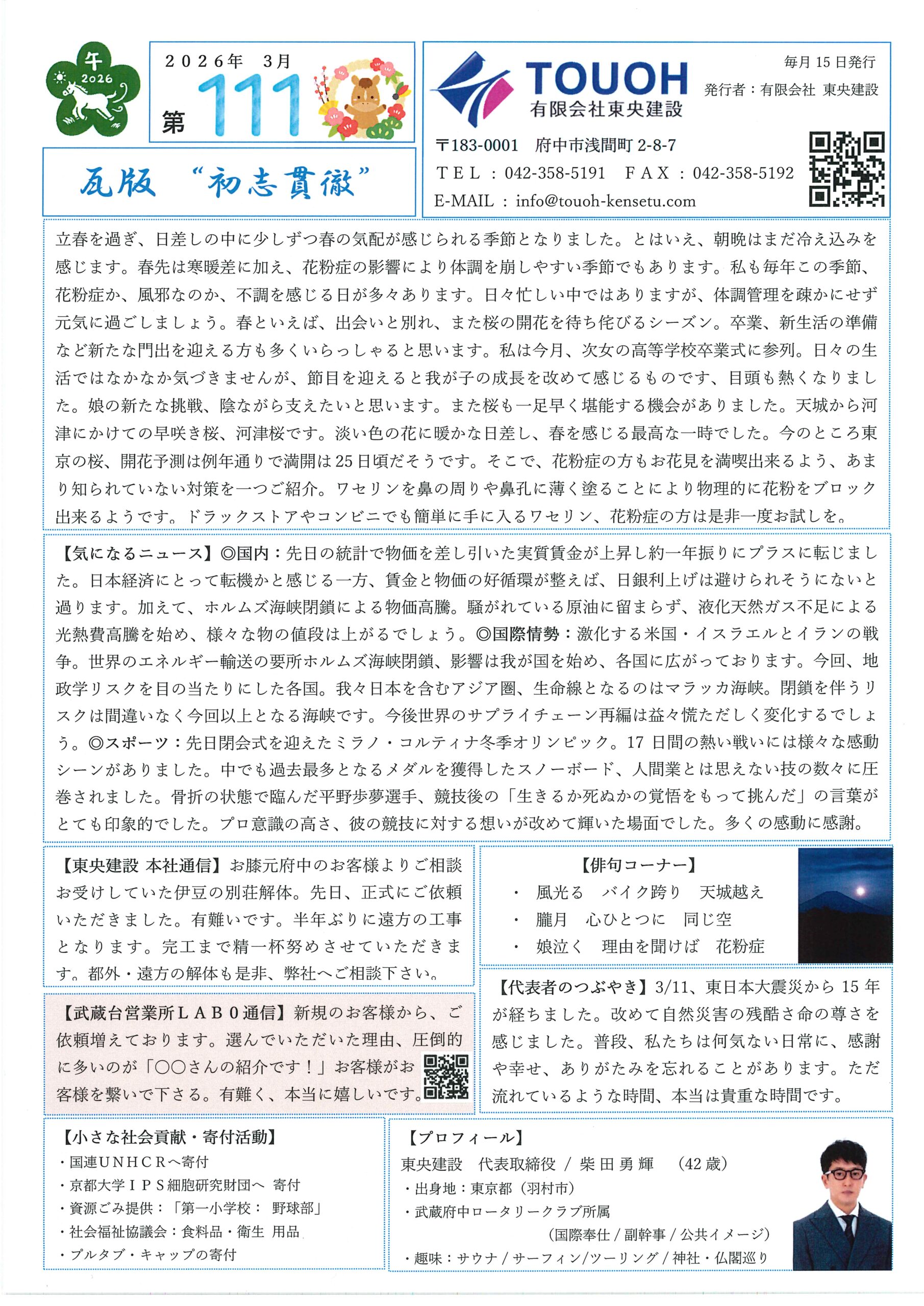 【社報】瓦版 ”初志貫徹” 第111号